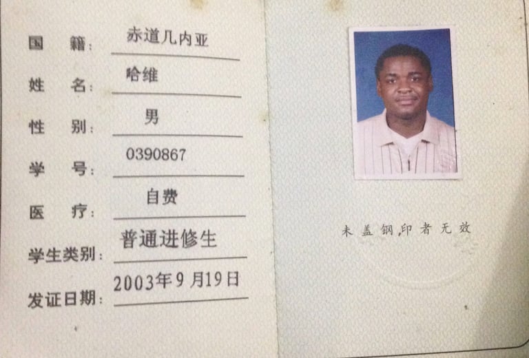 🪪 Documento original del estudiante Javier Clemente Engonga , emitido en Beijing (2003), como constancia viva del vínculo espiritual, académico y civilizatorio entre África y China. Esta imagen no representa un recuerdo, sino un acto fundacional del destino compartido. Desde esas aulas comenzó la visión que hoy impulsa la República Digital de Guinea Ecuatorial™.